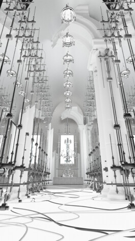 CITY OF GOD views the machine as a structure of epistemological and religious power. Drawing from the aesthetics of sacral objects, Catholic iconography, and the hidden architectures of server rooms and vaults, it reflects on systems of control, extraction, and worship. Inspired by Saint Augustine’s City of God, which contrasts the divine and earthly worlds, the piece explores the collapse of such systems as both loss and potential, where acts of subversion can generate new forms of agency.